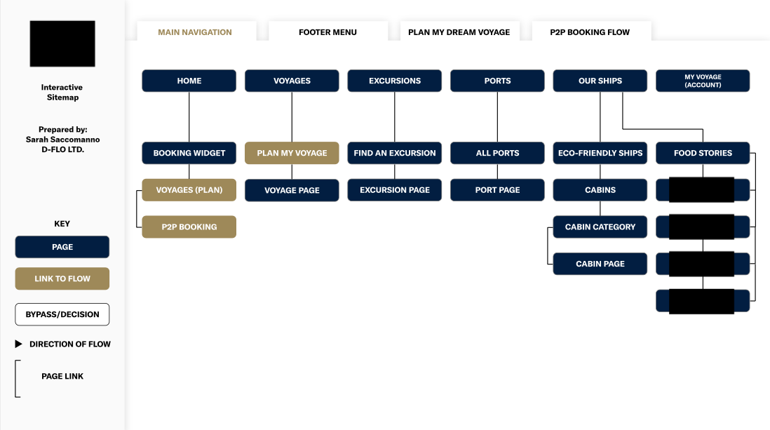 Focus Point: The current online experience had an incredible amount of pages- too many to navigate in a reasonable amount of time, which raised the cost and timeline of the initial build, and did not benefit the user. This segment allowed me to hone in and create a sitemap of pages that created an efficient experience and reduce build time by better organizing content in fewer pages.